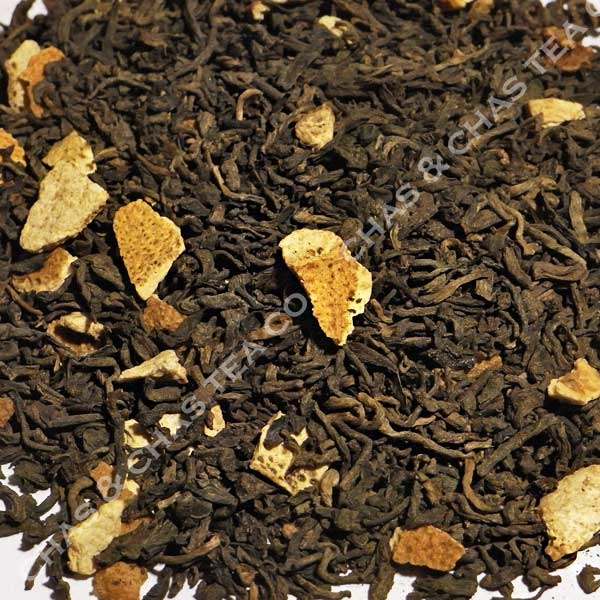 Té rojo Pu-Erh, naranja, vainilla y fresa.