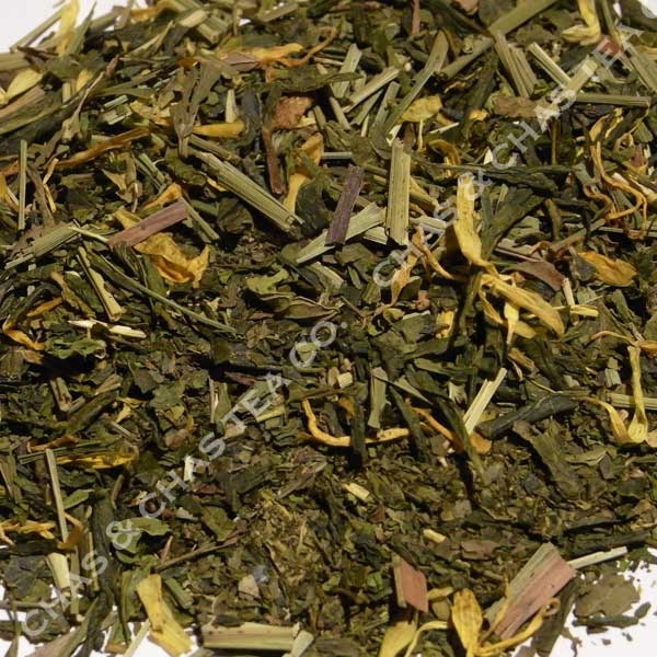 Té verde, piña, papaya, melocotón y cáscara de limón.